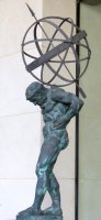 Off to one side, close by the tall building looming over the green patch, is a small statue of an Atlas-type figure, with a wire-fram globe on his back, known as an armillary sphere. It was erected in about 2011, so at the same time the Basaveshwara bust, by the International Maritime Organisation, whose headquarters - with a massive bronze prow of a ship in front - are just down the road. So we have Atlas, representing here strength or endurance, and the armillary sphere, symbolic of celestial navigation. The title of the work is actually Titan, and the sculptor is David Harber, whose work often features spheres.