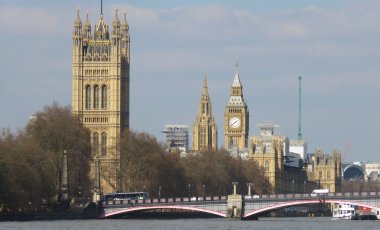 Almost directly across the river is Tate Britain, the original Tate Gallery. While the late Victorian Classical building itself, built in 1897 to the design of architect Sidney Smith, is rather obscured by trees except in the winter months, always visible is the figure on top of the pediment looking towards us - she carries a trident and the Union Jack decorates her shield, for she is Britannia, a most appropriate symbol for the national gallery of British art. (More statues of Britannia on this page.)